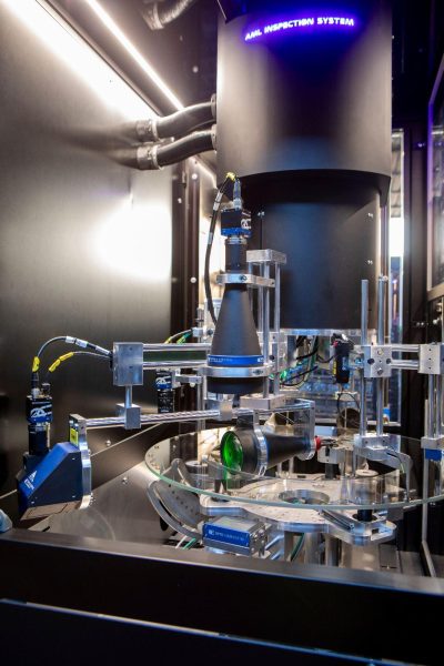AML设计了一款具有旋转玻璃台的视觉系统,该台上以每小时30000件的最高速度测量和检查圆柱形金属部件。零件的直径和高度尺寸在3毫米到50毫米之间。