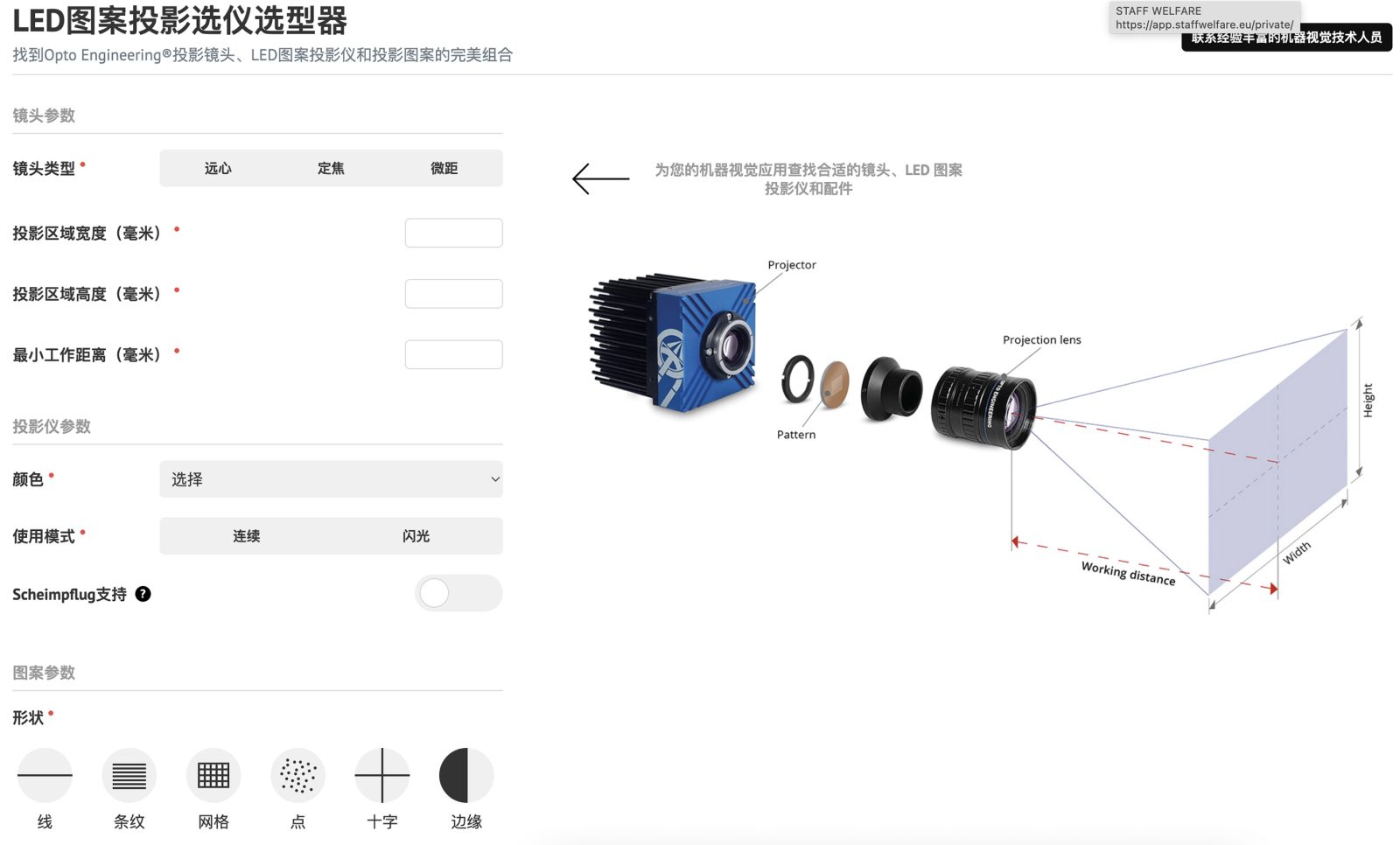 - Projection lens selector: find the perfect combination of projection lens, LED pattern projector and pattern