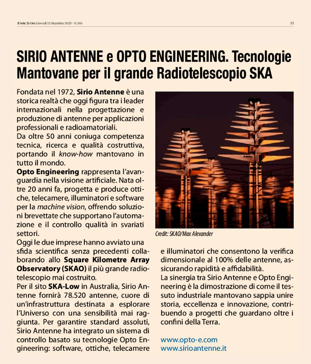 Sirio Antenne e Opto Engineering hanno unito le forze per combinare tecnologia e innovazione in un progetto scientifico unico nel suo genere: lo Square Kilometre Array Observatory (SKAO), il più grande radiotelescopio al mondo.