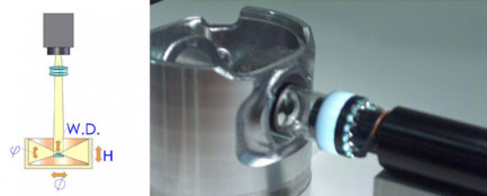 在这些情况下,有必要插入光学探针。通常它是以光纤为基础组成的元件,例如纤维内窥镜、管道镜或者其他设备(集成相干光纤束以将空腔内的图像传输到相机探测器)。很不幸的是,此类装置有很大的局限性,因为最粗的纤维束所采集的像素远远不如一台低分辨率的相机。出于这个原因,当要求高对比度的图像时,必须首选直接光耦合的相机:可借助配有特殊微距镜头的光学探针来实现此功能,通过球面镜或者非球面镜来查看孔内壁。此类解决方案可在特定厚度范围内检测到微小瑕疵:如果检测被限制在某一特定深度的孔内,则假如使用此类光学探针的话,就不必在整个深度内扫描空腔了。