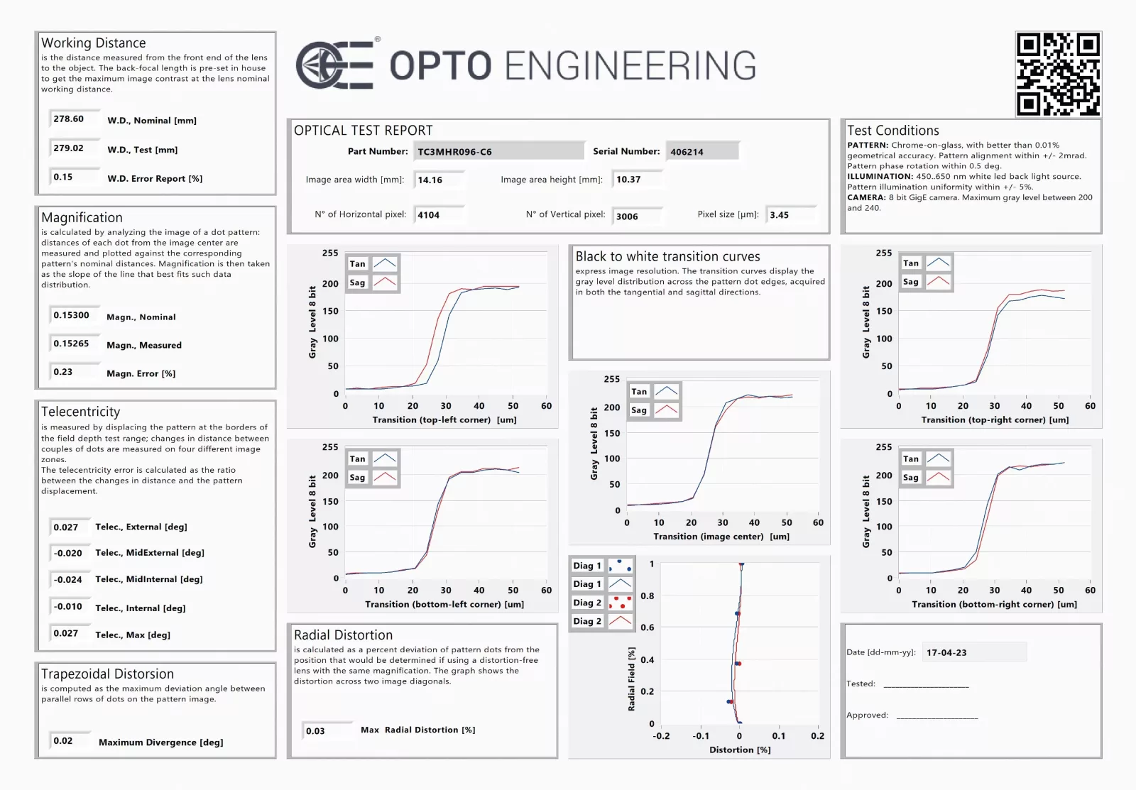 每个镜头均配有相应的光学测试报告;我们还将存储针对每个镜头采集的一些测试图像,以便跟踪可能出现的任何问题。