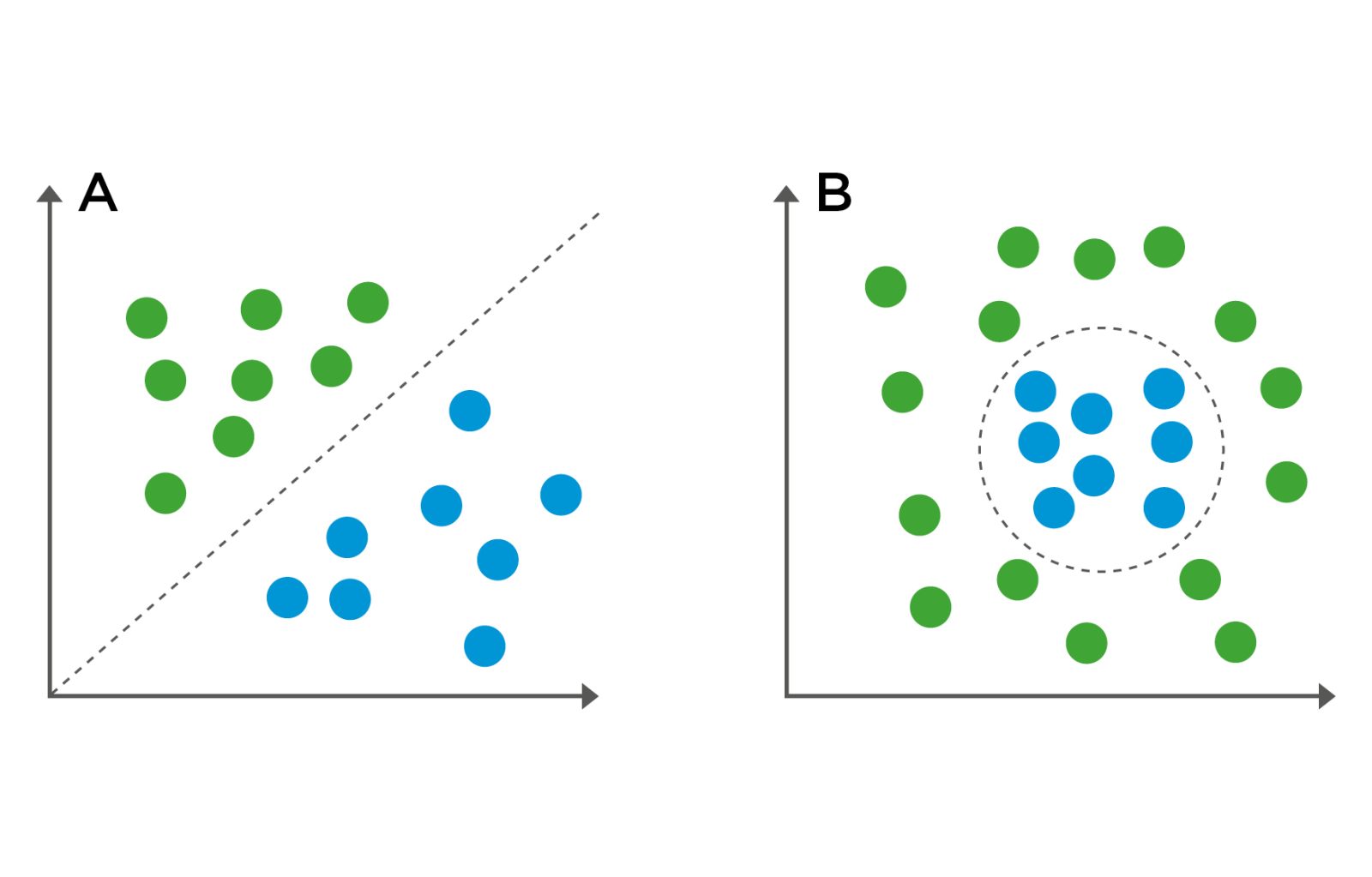 - The classes are linearly separable or can be made separable by a non-linear boundary.