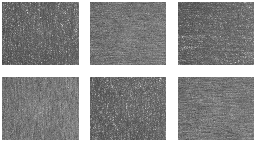This hardware setup produces images where good surfaces are always similar, middle-gray, while defects manifest as clear deviations from this uniformity. Here you can find the images being captured divided into OK and NOK classes. The first group has the OK samples, while the second group has the NOK samples.