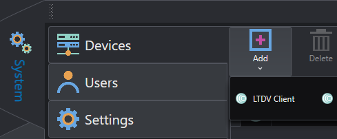 From the System/Device tab, add LTDV Client as a new device.